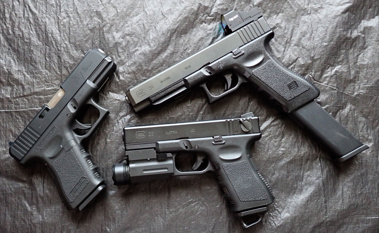 最初にGlockをエアガン化したのは言うまでもなくMGCで1991年よりG17/19/22/23/18を次々と発売しました。その後1999年になって、ようやくKSCとタナカがほぼ同時にG17をモデル化、マルイは2000年の年末あたりにG26を発売しました。タナカはマグナのパテントのせいで価格が高く売れず、KSCはバリエーションを増やしていく中、2006年になってマルイがG17を発売、その後Glockのエアガンはマルイと海外メーカーのマルイコピーが主流となります。2023年に完全に独自のメカでGHKがモデル化しましたが、トリガーの扱いに難があり(実銃がそうであるように重く、MGC時代のようにトリガーを引く速さでガス流量が変わる)、実射性能もマルイが2018年に出したG19以降の改良型マルイメカには及ばず、2026年2月現在も2023年に出たマルイのG17(Gen5)および2026年のG19Gen5がリコイルや命中精度において最高性能を誇っています。今回よりそんなGlockを全5回予定で見ていこうと思います(第1回)。